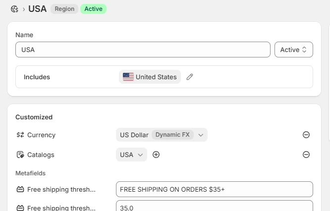 This approach is best suited to lightweight messages that change by Market. You’re not replacing full layout differences or complex logic, but you can adjust key details that guide buying decisions. Because metafields are editable by non technical staff, teams can update content independently from developers.