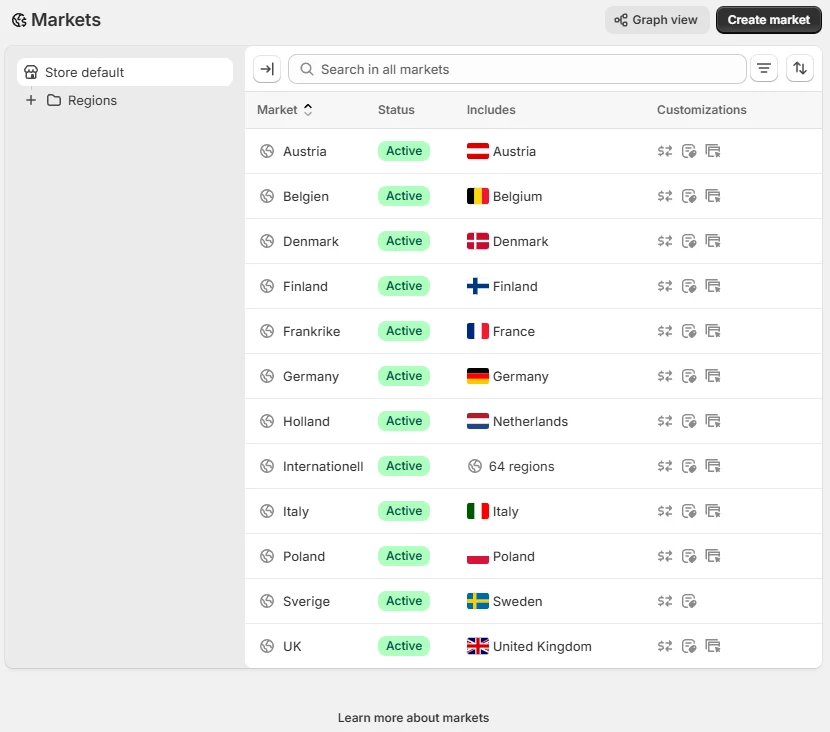 Instead of using Shopify Markets, operating different Shopify stores, one for each country.