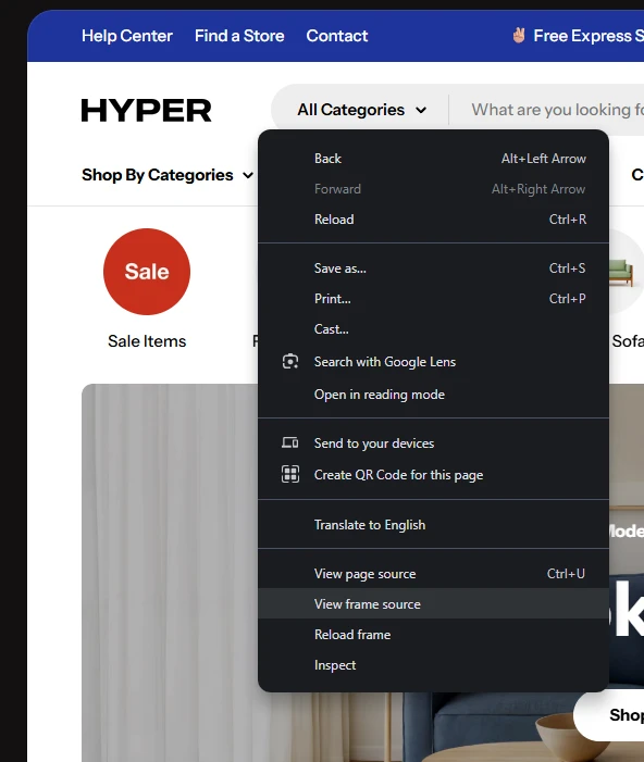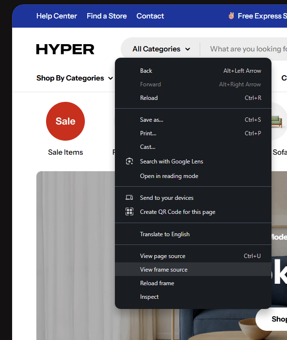 Right-click on something inside the demo, for example the header, and choose View frame source.