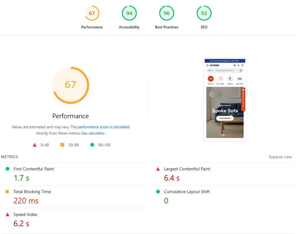 You’ll get a clearer picture if you test more than just the homepage. Shopify themes often behave differently on product or collection pages, where scripts and images vary.
