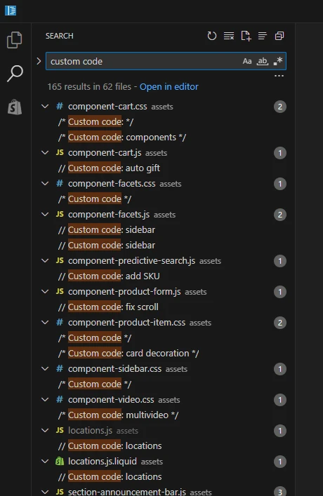 {% comment %}{{ my_old_code }}{% endcomment %}That single habit saves huge amounts of time later. When you want to migrate, just open the theme code editor and search for “Custom code” in your text editor. You’ll instantly see every line you’ve added or changed.