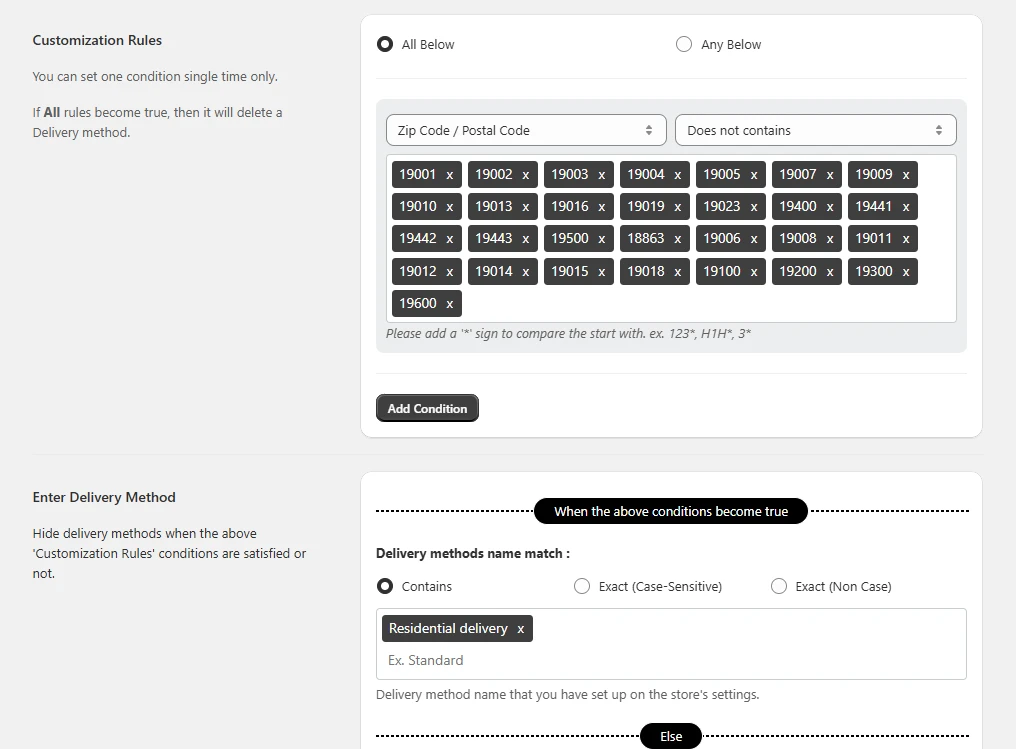 Luckily, there’s a way to make it work without upgrading your plan and using a calculated rates app. With the help of a delivery customization app, you can build rules that show or hide rates based on the customer’s ZIP code.