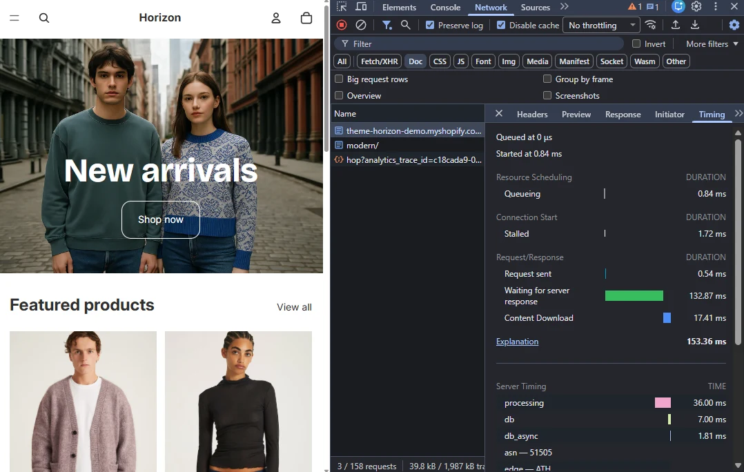 By checking those numbers in Chrome, then comparing them with Horizon and a few competitors, you get a grounded view of how your theme performs on the server side. If you see a clear gap, the next step is to dig into where that extra time comes from and address it at the theme or app level.