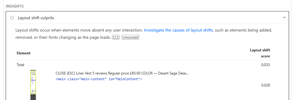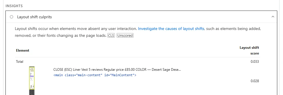 That’s your layout shift. And it’s often fixed by defining the right dimensions in CSS or Liquid.
