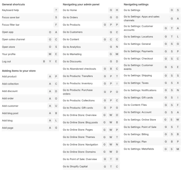 Shopify’s keyboard shortcuts aren’t hidden, but they’re not surfaced either.